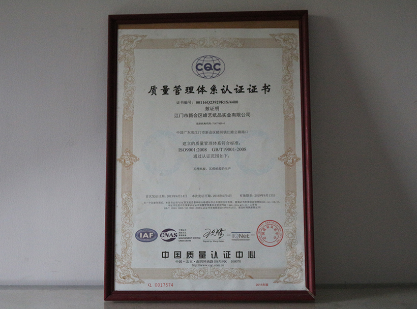 江門(mén)市新會(huì)區(qū)峰藝紙品實(shí)業(yè)有限公司屬私營(yíng)企業(yè),成立于1999年6月,是江門(mén)市出入境檢驗(yàn)檢疫局批準(zhǔn)的出口包裝專(zhuān)業(yè)生產(chǎn)廠(chǎng)家之一,公司主要生產(chǎn)各類(lèi)瓦楞紙板、紙箱系列產(chǎn)品。